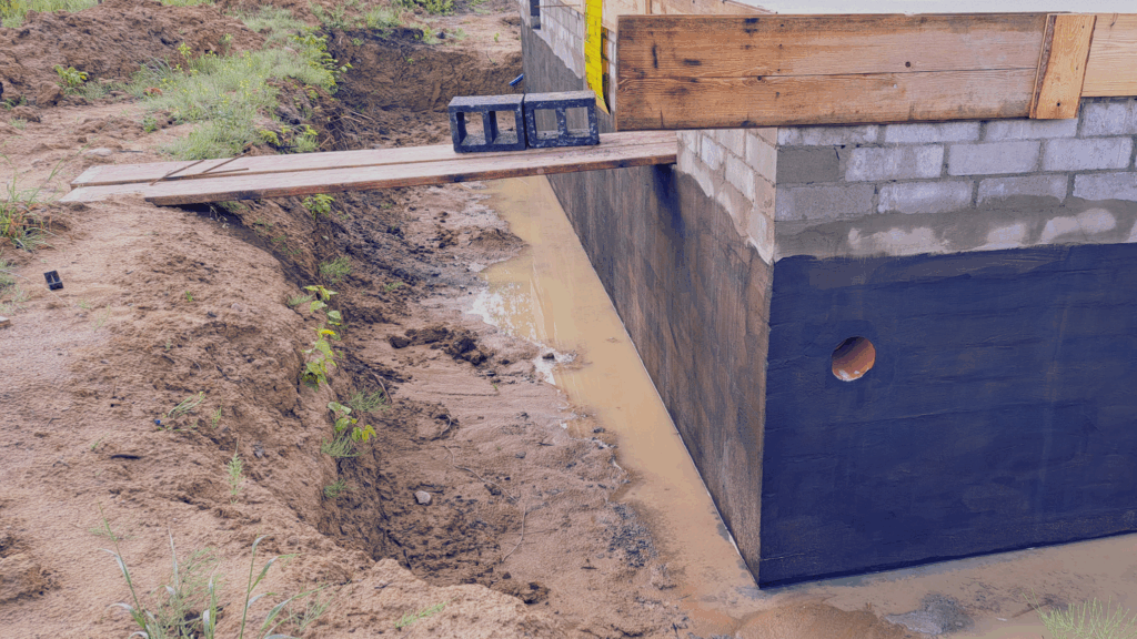 To klasyka. Fundamenty posmarowane czymś czarnym, bo „tak się robi od zawsze”. Najczęściej najtańszą masą bitumiczną — niezależnie od tego, czy budynek stoi na piasku, glinie, czy w miejscu, gdzie woda gruntowa podchodzi pod samą ławę.