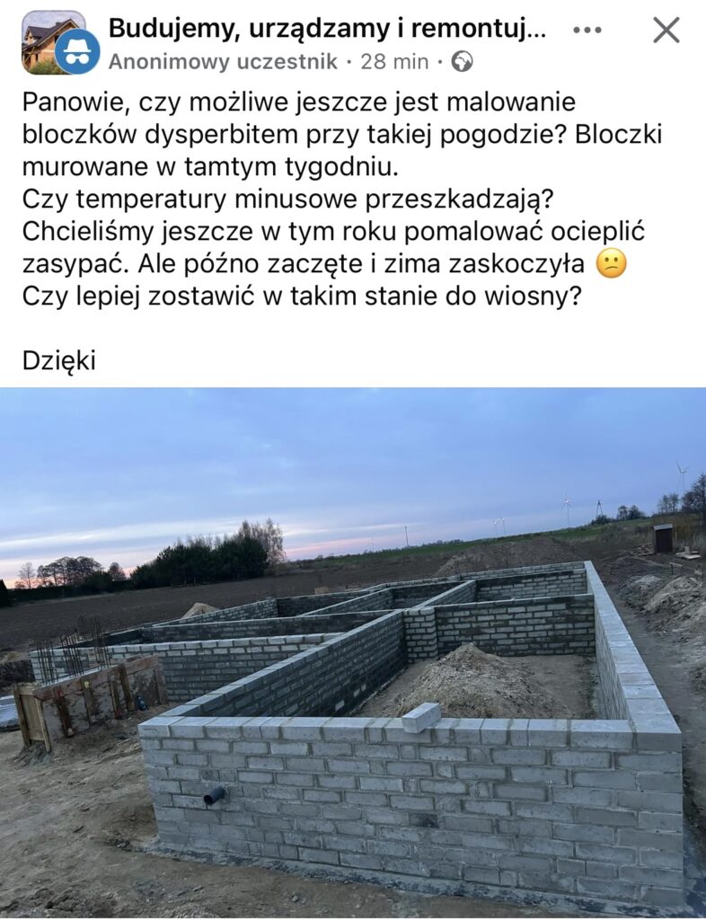 W idealnych warunkach prace hydroizolacyjne wykonuje się wiosną lub latem. Jednak nie zawsze jest taka możliwość – budowa często ma własny harmonogram, a inwestor chce zamknąć etap fundamentów jeszcze przed zimą. Mogą o tym decydować choćby względy finansowe i harmonogram wypłat transz kredytu.